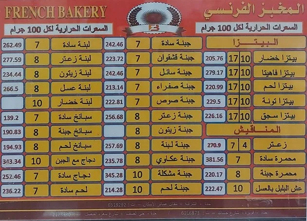 (majed alsharif)هذا المحل الرىيسي ومخبز فرنسي فرنسي الشابورة عندهم لذيذة وعندهم كيكة بدخن واسعارهم حلوة ومعقولة اتمنى يجلسون على نفس سياستهم اما اذا غيرور راح اكنسل كل التقيمات وصور في الفروع الثلاثة جميعاً ولسا راح يفتحو محل رابع قريب من السامر بتوفيق لهم وتعاملهم ممتاز