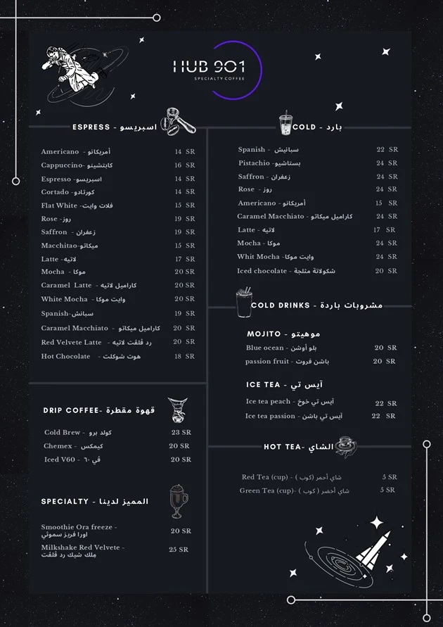 كافيه هب HUB 9O1 مقهى يقدم القهوة المختصة في مدينة جدة افتتح حديثا ويقدم المشروبات الساخنة والبارده والقهوة المقطرة بالاضافة الى الحلويات والكيك والكرواسون ووالوافل وغيره من الاصناف الاخرى المتنوعه يقع كافيه هب HUB 9O1 بحي الحمدانية بمدينة جدة...
