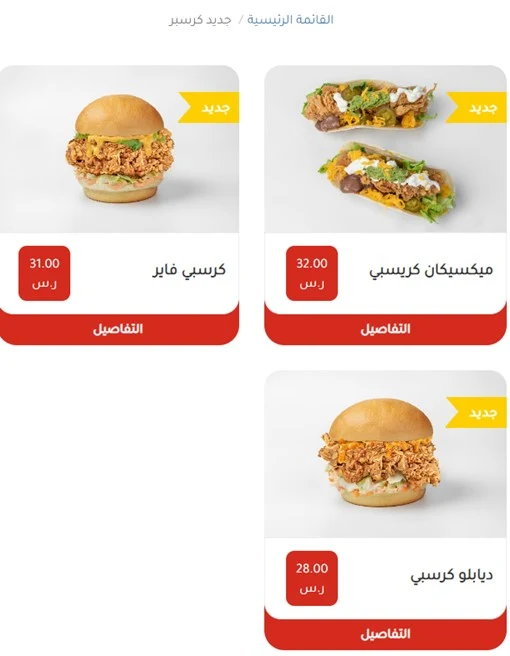 منيو مطعم كرسبر جدة